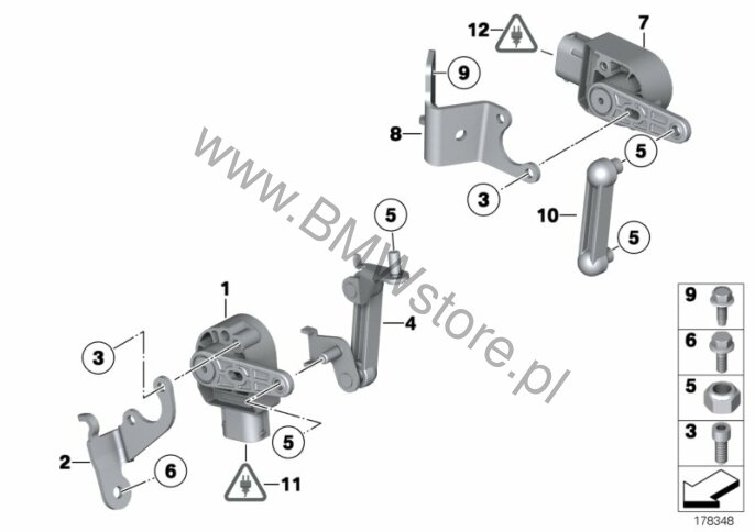 Dla samochodów z EDC (S223A) = TAK lub Adaptive Drive (S2VAA) = TAK lub Integral active front steering (S2VHA) = TAK lub Światło ksenonowe (S522A) = TAK Czujnik poziomu 37 14 6 870 000 prawy |