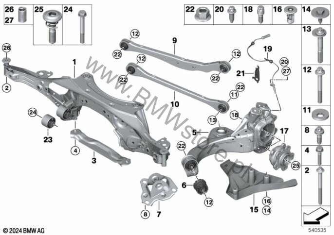 Wspornik tyl. osi-zaw. kół-łożyska kół