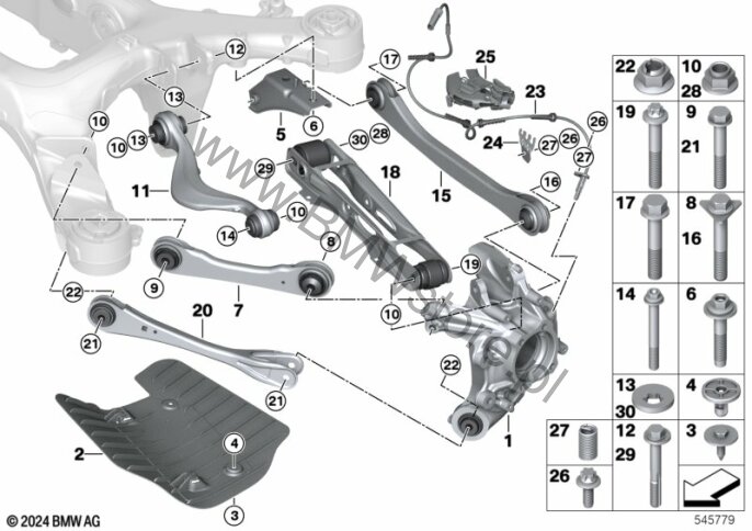 Wspornik tylnej osi/Zawiesz. kół dla BMW 5' G60 Saloon 530e Limousine ECE