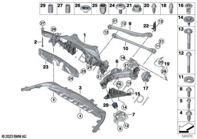 Wspornik tyl. osi-zaw. kół-łożyska kół