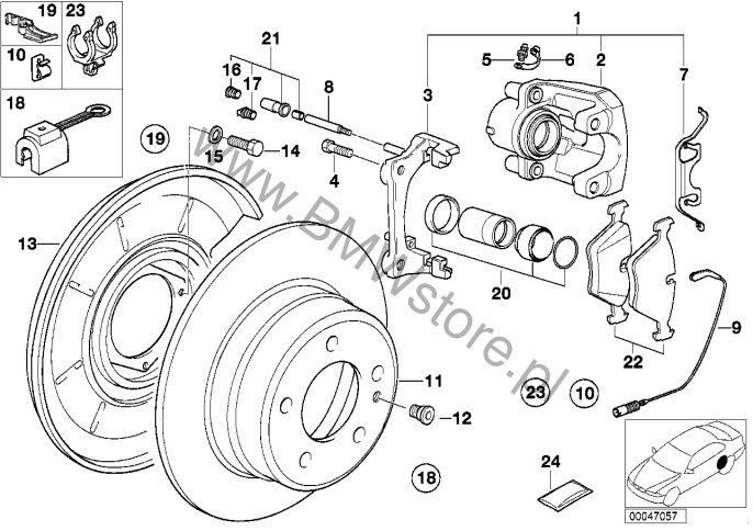 Dla samochodów z Wersja dla poj. służb. Zestaw naprawczy zacisku hamulcowego 34 21 1 153 194 |