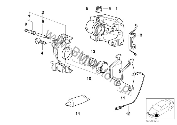 Hamulec tył-okładzina-czujnik dla BMW 5' E39 520i M54 Touring ECE