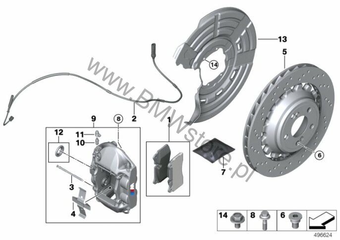 Sport.ukł.ham.M czerw.- wym.tylnej osi dla BMW 2' F87 M2 M2 Coupé ECE