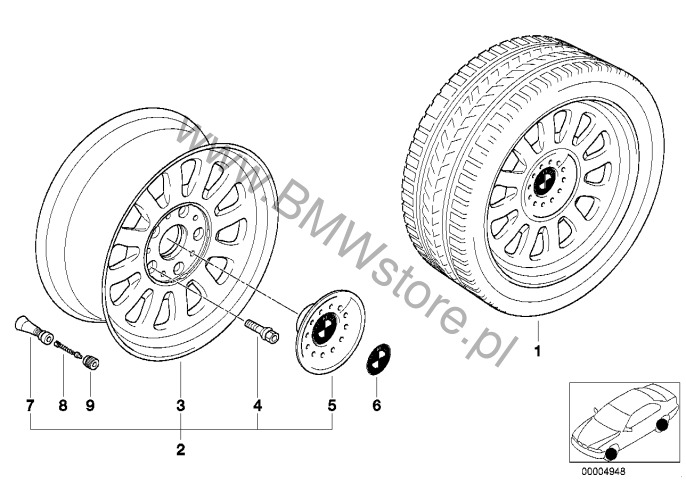 pasuje tylko do Zawór wkręcany RDC Zakrętka zaworu RDC 36 11 1 095 436 |