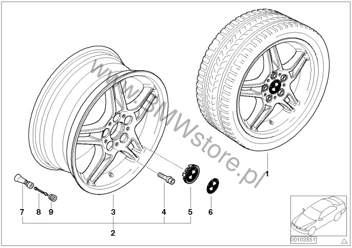 Obr. BMW, st. le. podw. spr. 125 dla BMW 3' E46 320d M47N Touring ECE