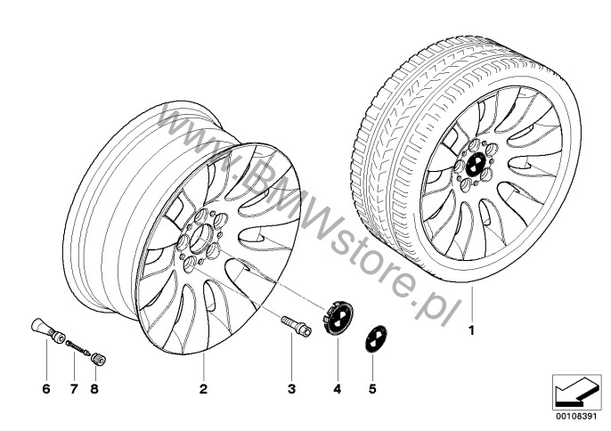 Dla samochodów z Kontrola ciśnienia w oponach (RDC) (S265A) = TAK Zakrętka zaworu RDC 36 11 1 095 436 |