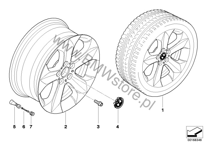 Dla samochodów z Wersja krajowa Kanada (L838A) = TAK i Wskaźn. ciśnienia pow. w oponach (S2VBA) = TAK Zawór wkręcany RDC 36 14 6 792 830 |