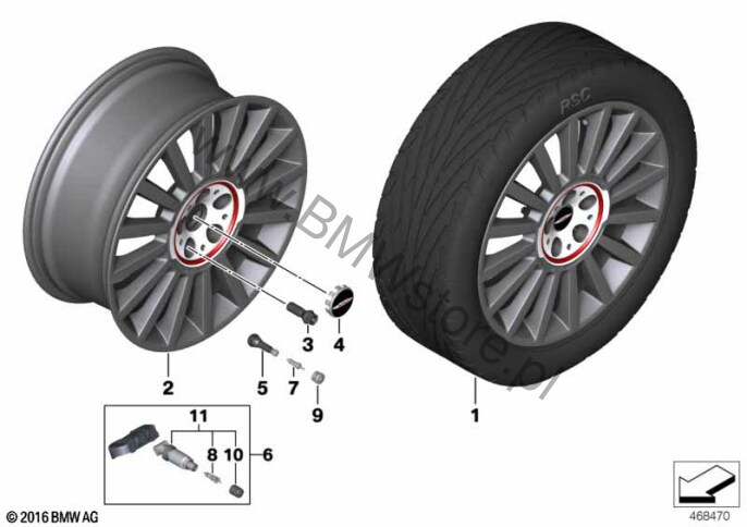 19'' obr.st.le. Rallye Spoke 536 (0ZE0) = TAK Wskaźn. ciśnienia pow. w oponach (02VB) = NIE Zawór gumowy 36 12 1 116 326 |