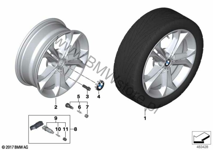 18" st.lekki Double Spoke 688 (026V) = TAK Wskaźn. ciśnienia pow. w oponach (02VB) = NIE 18" st.lek.Double Spoke688 tr.aw. uniw. (026W) = TAK 36 14 1 095 389  |
