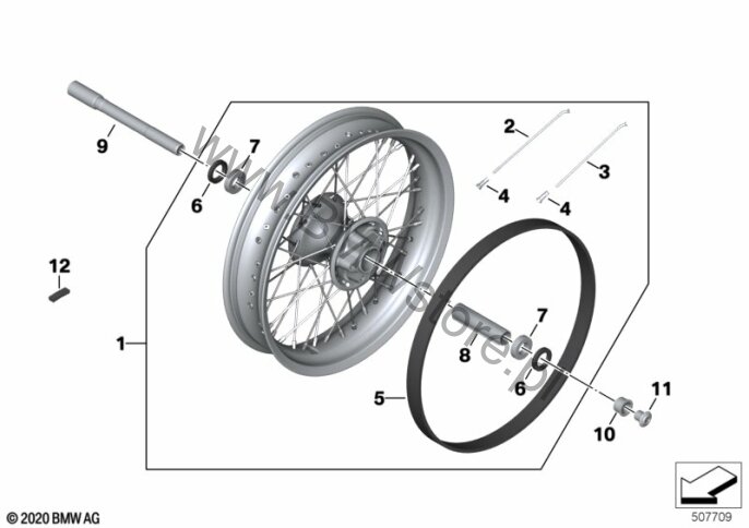 Koło szprychowe z przodu dla BMW K34 (R 18, R 18 Classic) R 18 Classic (0L21, 0L23) USA