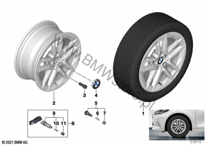 BMW obr.st.l.Double Spoke 186 (01LQ) = TAK Wskaźn. ciśnienia pow. w oponach (02VB) = NIE Opony zimowe zamiast letnich z fabryki (0931) = TAK Zakrętka zaworu 36 12 1 120 779 |