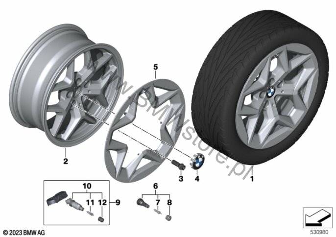 BMW obr.st.l. Y Spoke 932 STD (03FY) = TAK Wskaźn. ciśnienia pow. w oponach (02VB) = NIE BMW OBR.st.l.aerodynam.932 STD (03FZ) = TAK Zawór gumowy 36 12 1 116 326 |