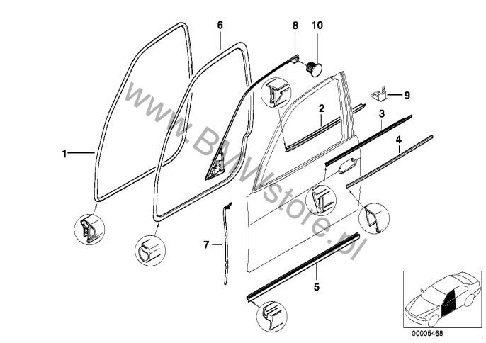 Dla samochodów z M Pakiet sportowy (P337A) = TAK lub Wysoki połysk Shadow-Line (S760A) = TAK Listwa ochronna wewn., lewa 51 21 2 694 035 |
