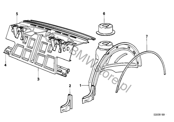 Ścianka działowa bagażnika/wnęki koła dla BMW 6' E24 635CSi Coupé USA