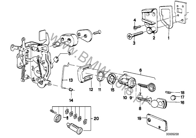 Klamka drzwi przed./Zamek/Klucz dla BMW 3' E21 315 Limousine ECE
