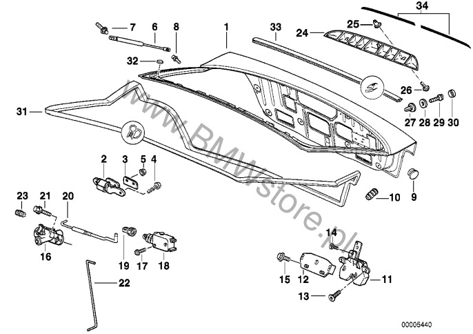 pasuje do pojazdów z i bez wycieraczki tylnej szyby Pokrywa bagażnika 41 62 8 239 225 |