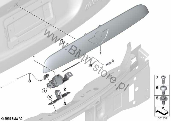 System zamykania tylnej klapy dla Mini F56 BEV Cooper SE 3-drzwiowy ECE