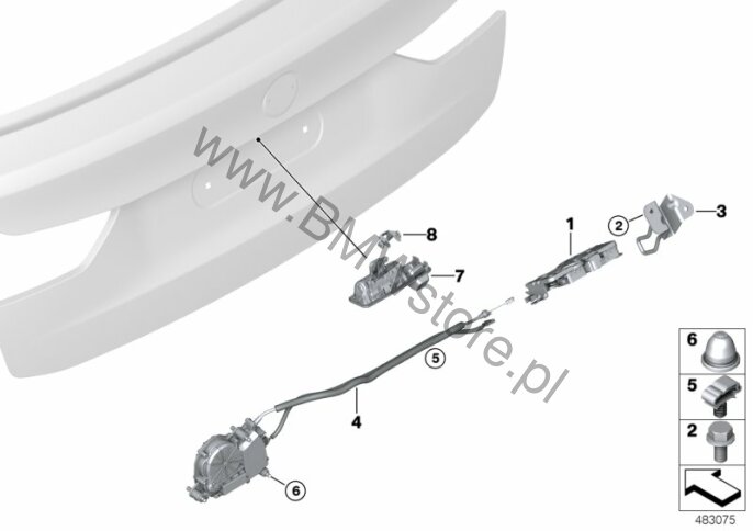 Dla samochodów z Kamera jazdy wstecz (S3AGA) = TAK lub System wspomagania parkowania (S5DMA) = TAK lub System wspomagania parkowania Plus (S5DNA) = TAK Przycisk tylnej klapy 51 24 7 381 868 |