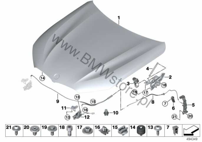 Dla samochodów z Aktywna ochrona pieszych (S8TFA) = TAK Element wykonawczy lewy 51 23 7 347 405 |
