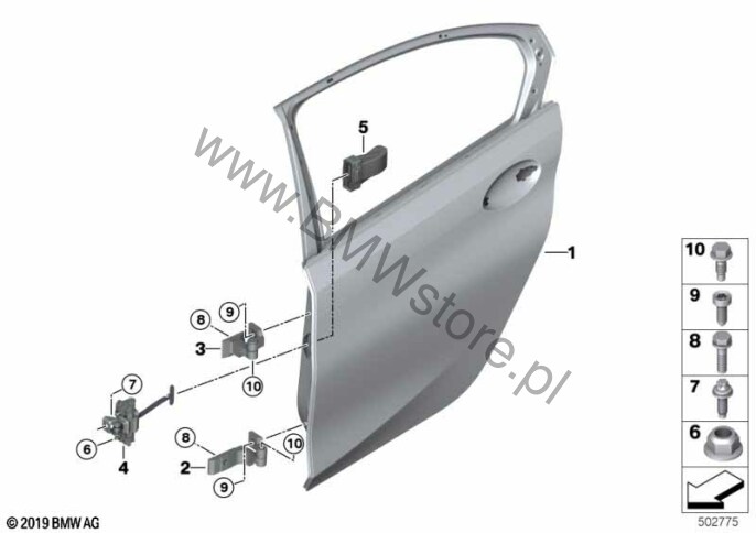 Tylne drzwi - zawias/hamulec drzwi dla BMW 3' G20 Saloon LCI 330i Limousine ECE