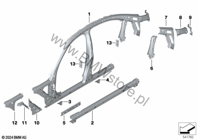 Szkielet boczny, środek dla BMW 3' G20 Saloon LCI 330i Limousine ECE