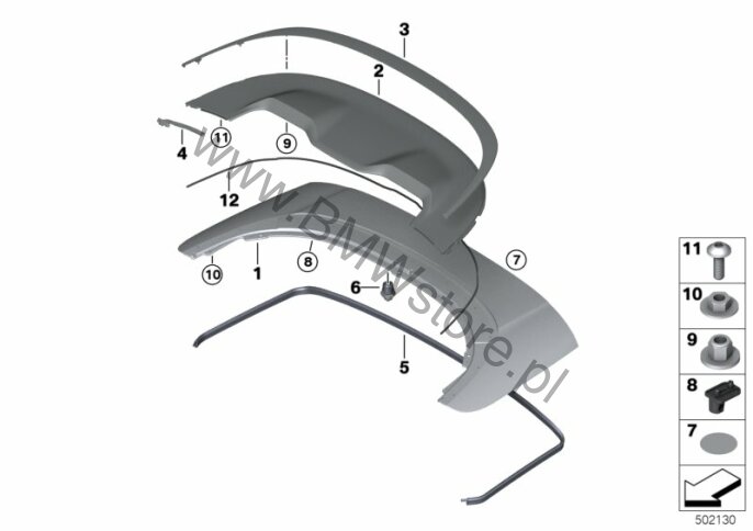 Dla samochodów z Wyp. zewnętrzne Chrome-Line (S346A) = NIE Listwa ozdobna pokrywy składanego dachu 51 17 7 464 469 |