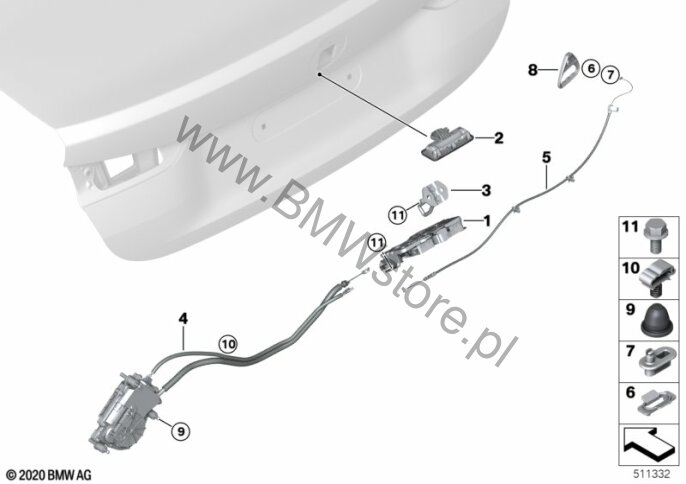 Napęd siłownika zamka pokrywy bagażn.