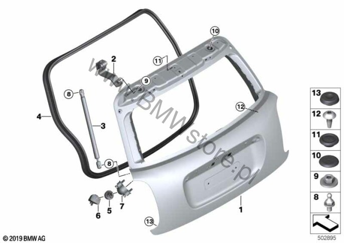 Pokrywa bagażnika dla Mini F55 LCI Cooper S 5-drzwiowy ECE