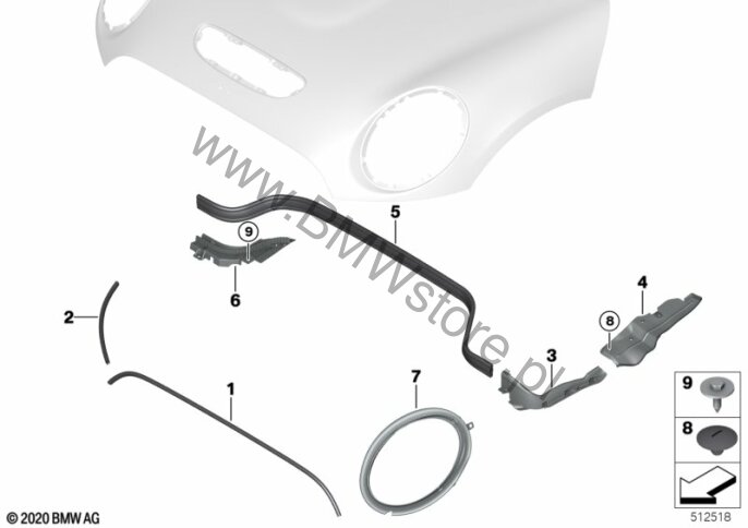 Pokrywa silnika, uszczelki dla Mini F56 BEV LCI Cooper SE 3-drzwiowy ECE