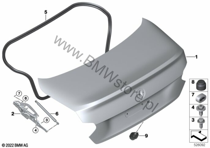 Zawias pokrywy bagażnika, prawy