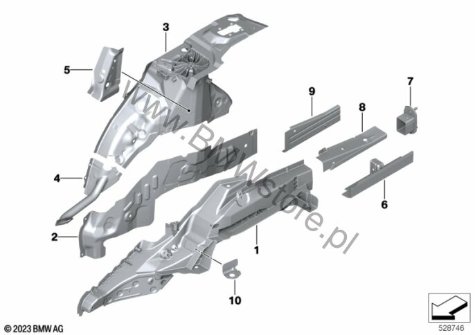 Wnęka koła, tylna dla BMW 5' G60 Saloon 530e Limousine ECE