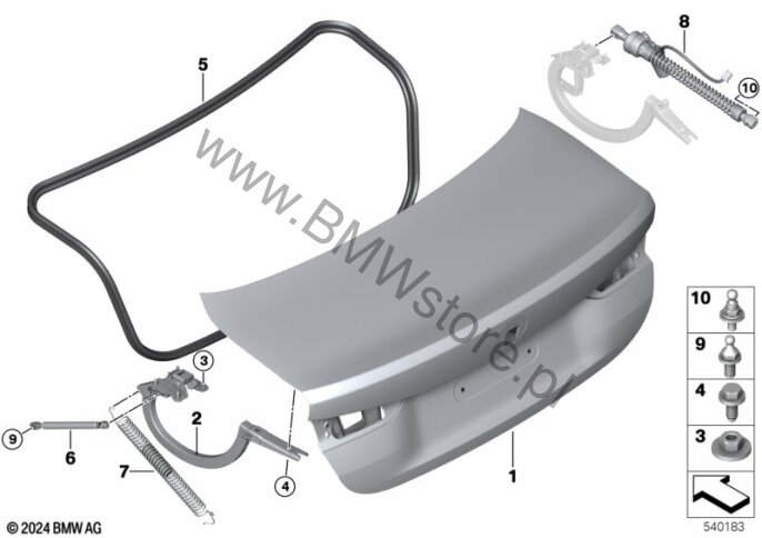 Pokrywa bagażnika dla BMW 4' G22 Coupé LCI M440iX ECE