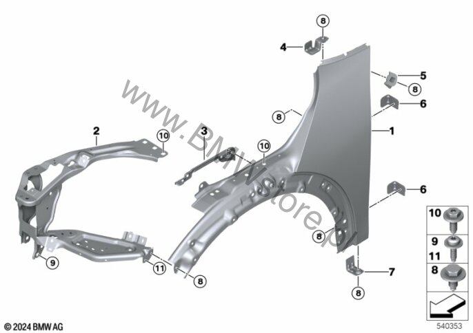 Uchwyt ścianki bocznej, górny prawy