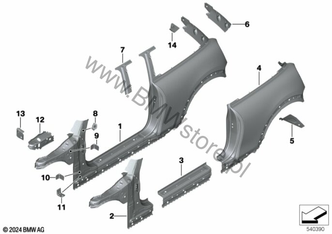 Szkielet boczny dla Mini F66 JCW 3-drzwiowy ECE