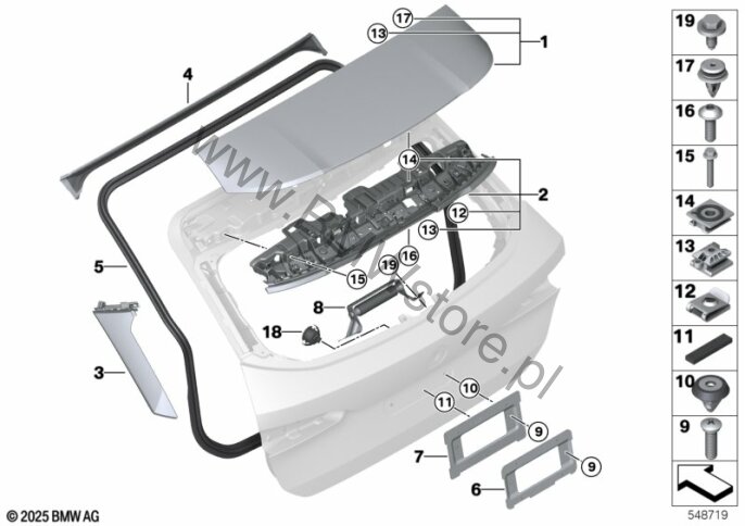 Elem. dod. tylnej klapy dla BMW 5' G61 Touring 520d ECE