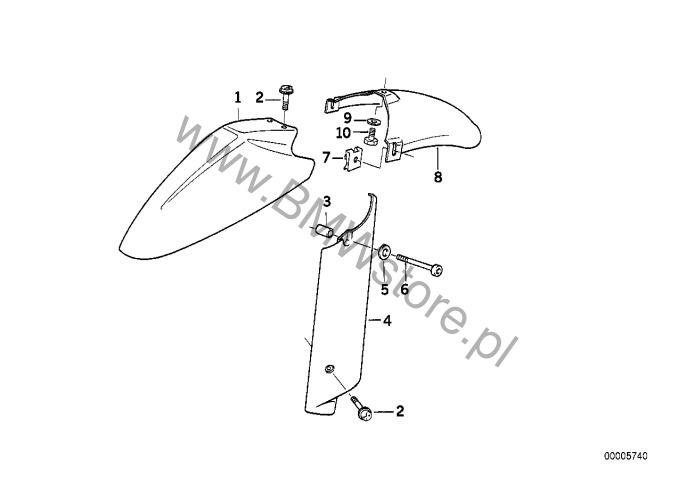 Błotnik przedniego koła, przód dla BMW 259 (R 1100 S, R 1100 RS) R 1100 RS 93 (0411,0416) ECE