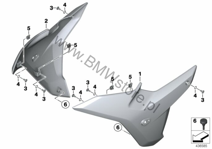 Boczne elementy osłony dla BMW K54 (R 1200 RS, R 1250 RS) R 1200 RS (0A05, 0A15) USA