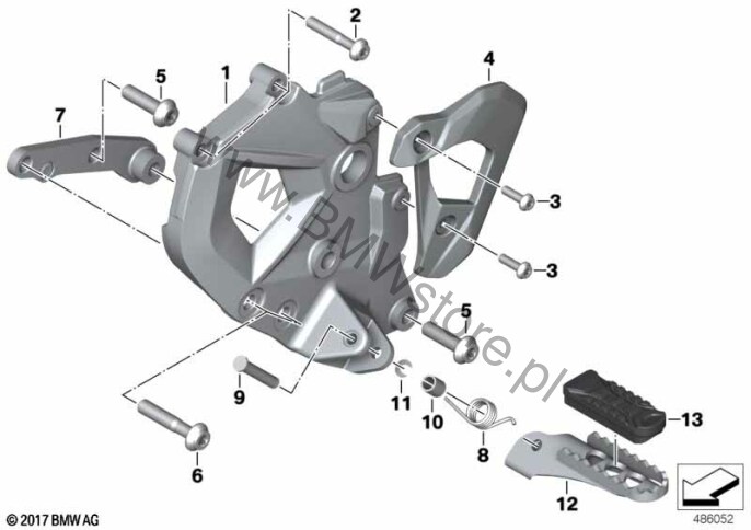 Płyta podnóżków/podnóże przód z lewej dla BMW K80 (F 750 GS, F 800 GS) F 800 GS (0K51, 0K53) ECE