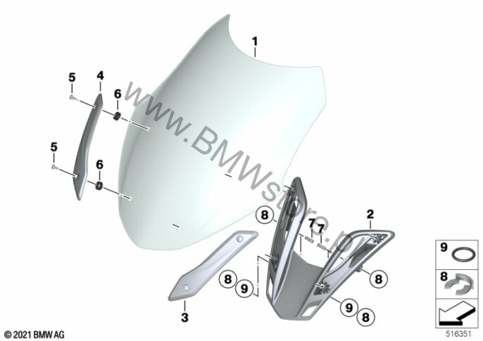 Szyba / mocowanie dla BMW K52 (R 1200 RT, R 1250 RT) R 1250 RT 20 (0L01, 0L03) ECE