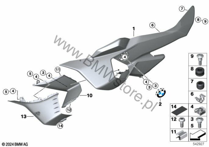 Tapicerka boczna dla BMW K67 (S 1000 RR) S 1000 RR 25 (0P21, 0P23) ECE