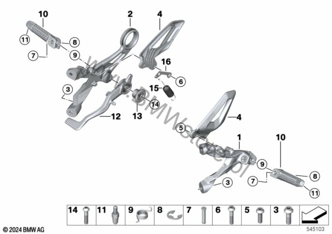 Podnóżki przednie dla BMW K67 (S 1000 RR) S 1000 RR 25 (0P21, 0P23) ECE