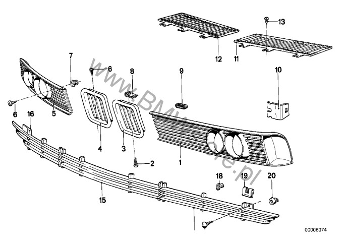 Dla samochodów z Spryskiwacze reflektorów Krata wlotu powietrza prawa 51 13 1 965 038 |