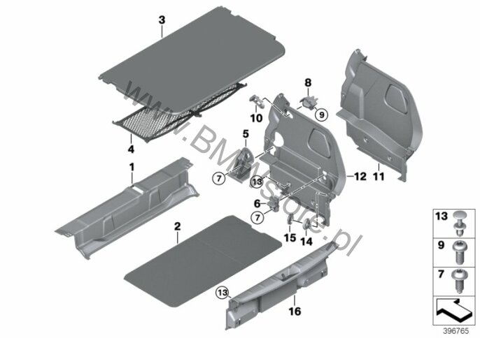Dla samochodów z Zespół schowków (S493A) = TAK Moc. wsuw. podłogi bagażnika, tylna cz. 51 47 7 314 283 |