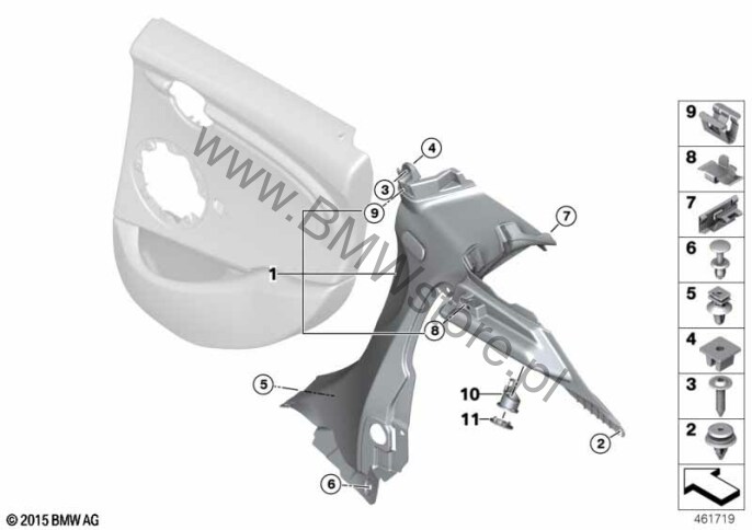 Zespół schowków (0493) = NIE Tapicerka boczna tylna lewa 51 46 7 401 809 |