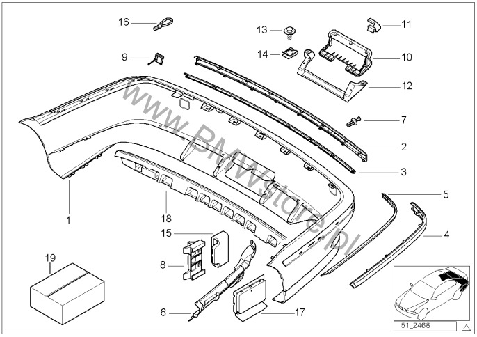 Dla samochodów z Park Distance Control i Shadow-Line Listwa zderzaka 51 12 8 205 246 |