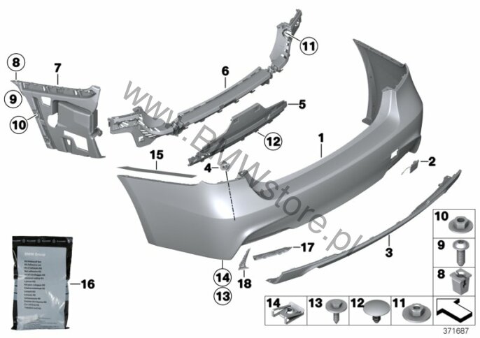 Dla samochodów z Park Distance Control z tyłu (PDC) (S507A) = TAK lub Park Distance Control (PDC) (S508A) = TAK Uwaga! Instrukcja naprawcza Numer dokumentu Sws-anl-sws2012-011812874 oraz instrucji naprawczej 'tłoczenie otworów w zderzaku'. ***** Obudowa zderzaka tylnego gruntowana 51 12 8 056 223 tylko w połączeniu z |