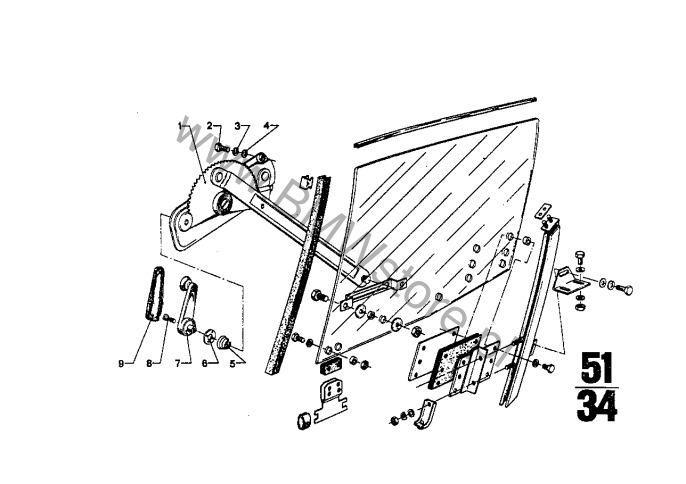 Mechanizm szyby drzwi przednich dla BMW 2.5CS-3.0CSL 3.0CS Coupé ECE