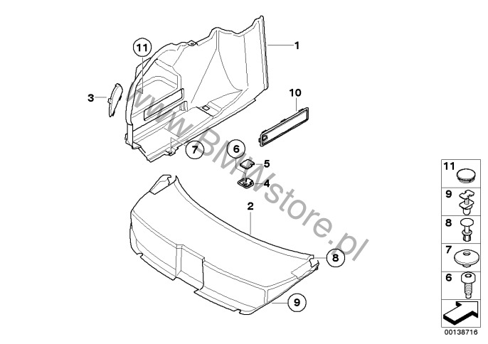 Dla samochodów z Moduł odbiornika DAB (S654A) = TAK lub Radio satelitarne BMW (S655A) = TAK lub Instalacja radia satelitarnego BMW (S693A) = TAK Obudowa bagażnika lewa 51 47 6 973 523 |