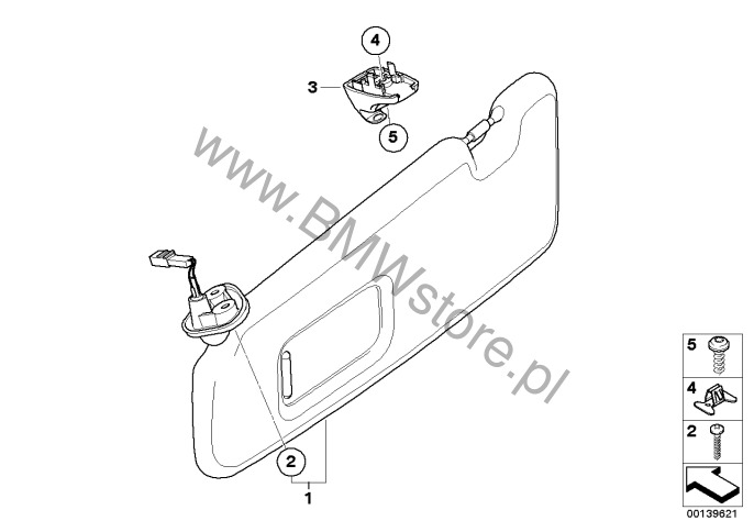 Dla samochodów z Podsufitka antracyt (S775A) = NIE i antracyt (AT) = TAK lub alaska-grey (A1) = TAK lub sydney-blau (A2) = TAK lub graphite (A4) = TAK lub alaska-grey (A6) = TAK lub Monaco blue (D9) = TAK lub Czarny (SW) = TAK Uchwyt osłony przeciwsłonecznej 51 16 7 120 625 |