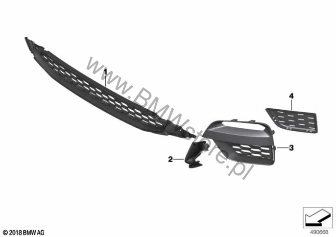 Pakiet areodynamiczny M (0715) = TAK M Sport X wyposażenie nadwozia (071A) = TAK Osłona zderzaka, przednia lewa 51 11 8 070 393 |